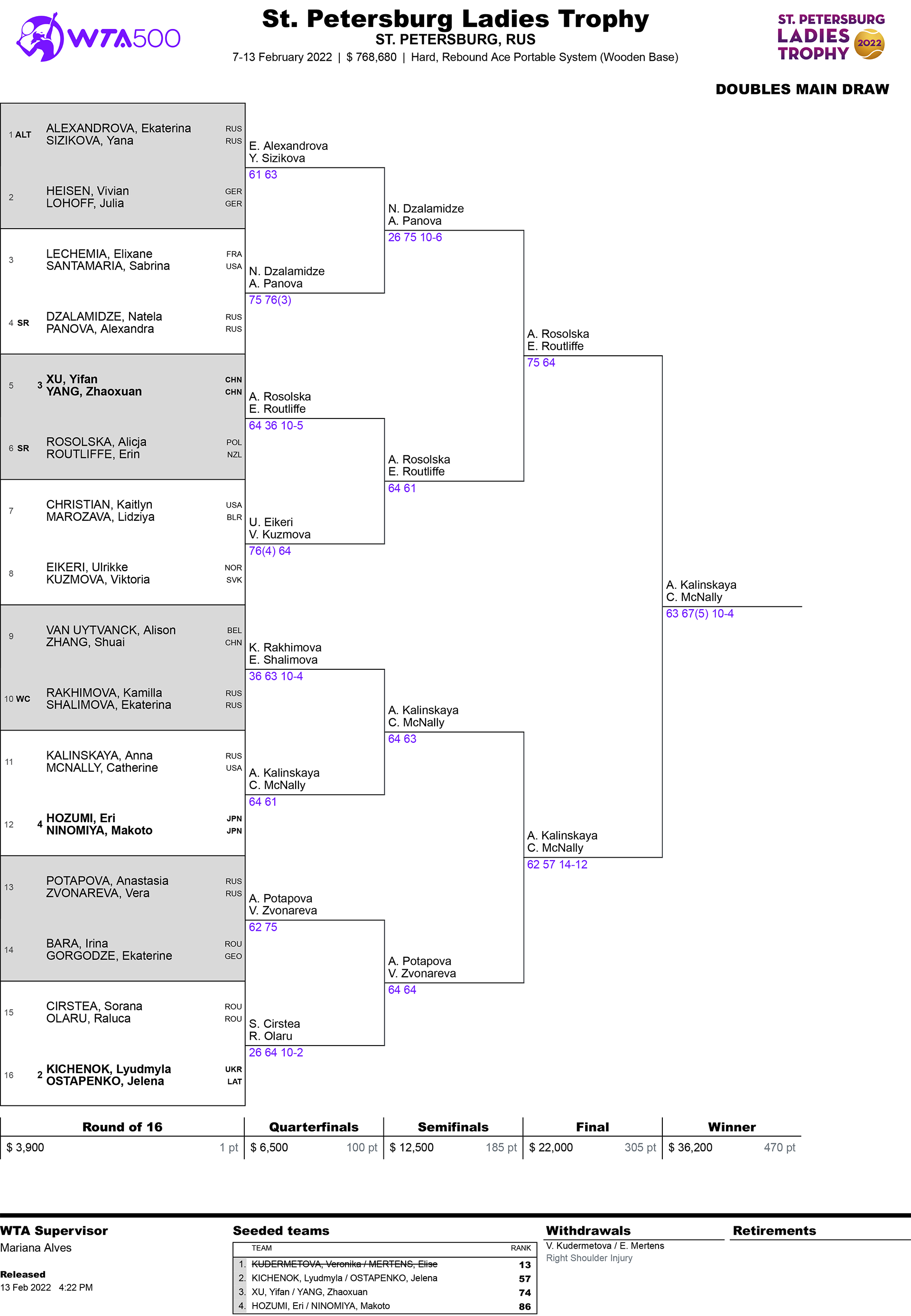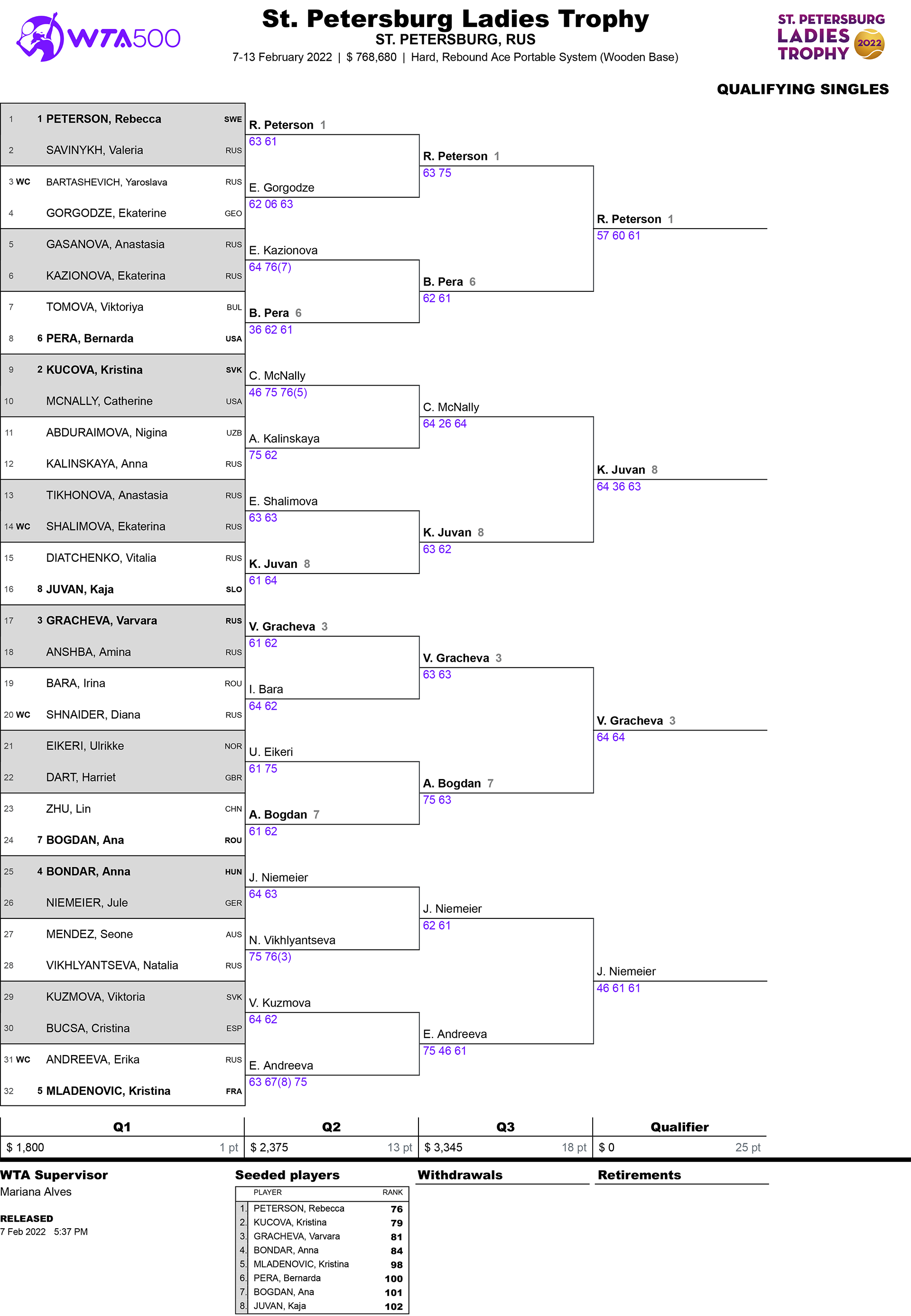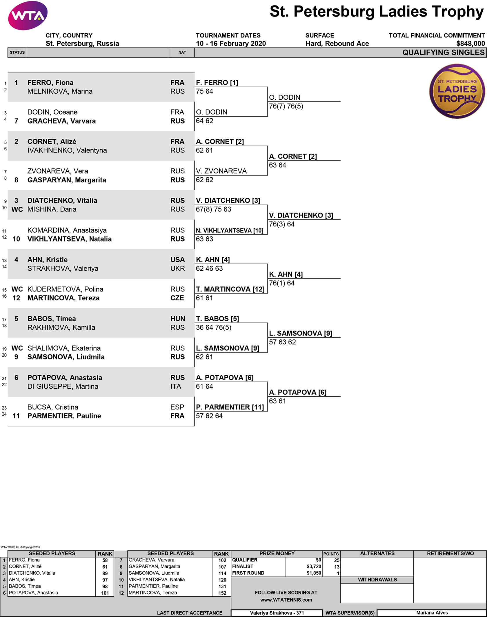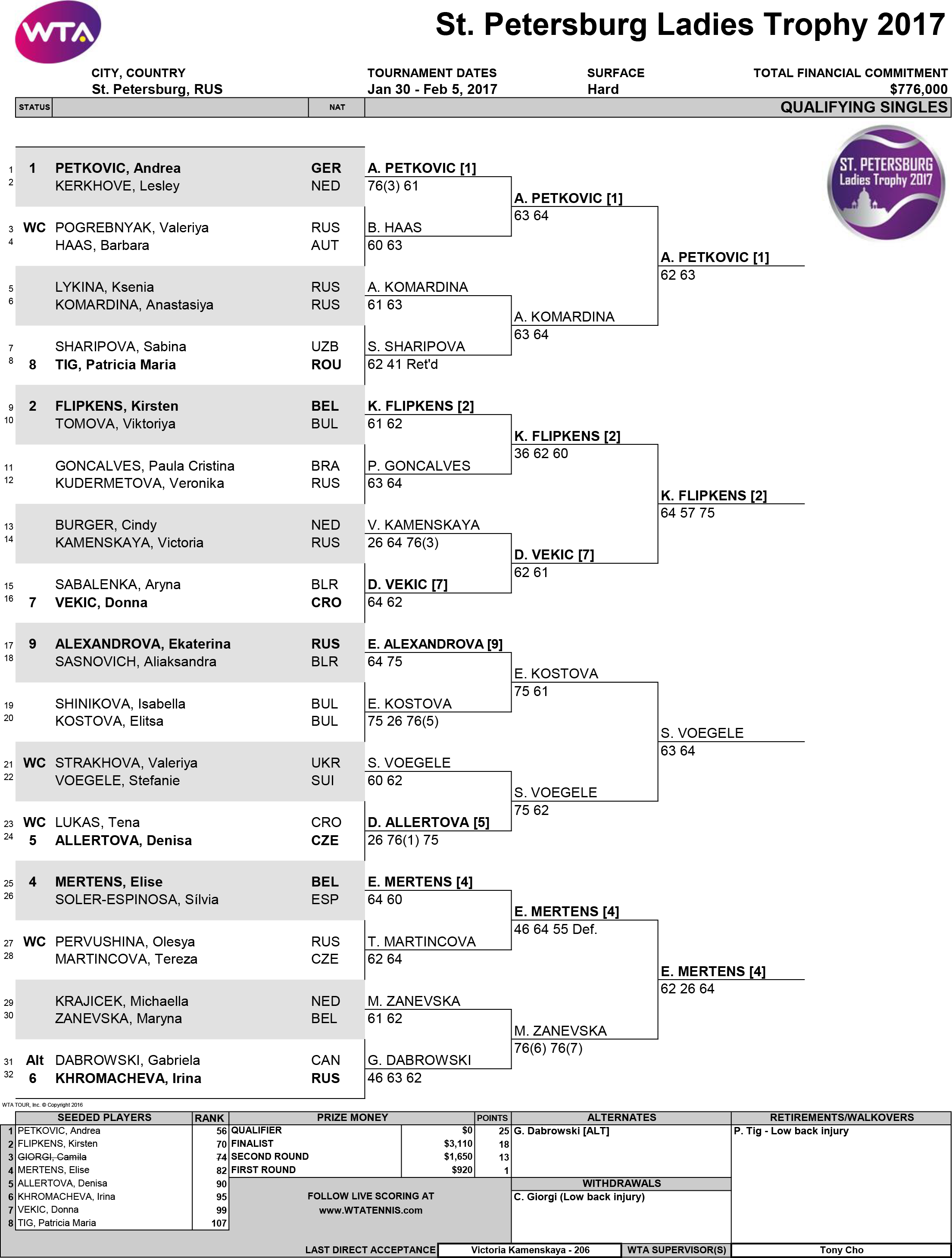 The St. Petersburg Ladies Trophy is a women's professional international tennis tournament held in winter in St. Petersburg since 2016 on indoor hard courts. It belongs to the WTA 500 series with a prize fund of about 700 thousand dollars and a tournament grid designed for 28 participants in singles and 16 pairs.
